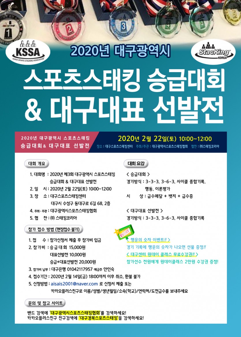 2020년 대구대표선발전 및 승급대회 (2/22) 페이지 정보 작성자 한국스포츠스태킹협회 댓글 0건 조회 1,857회 2020년 대구대표선발전 및 승급대회 (2/22) 목록 이전글2022 양산시스포츠스태킹협회 승급대회 22.10.24 다음글2019 서울대표 경기대표 선발전 및 승급대회 (3/30) 19.04.04 댓글목록 댓글목록 등록된 댓글이 없습니다.